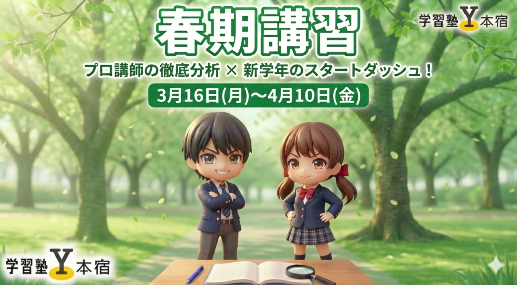 - 【2026春】新学年のスタートダッシュを決定づける「弱点分析」春期講習のご案内こんにちは。 本宿中・左近山中・万騎が原中がメインの対象中学校となっております学習塾 Yです。 当塾では3月16日(月)~4月10日(金)にかけて春期講習が行われます。 1. その「わかったつもり」が一番危ない 「学年末 […]