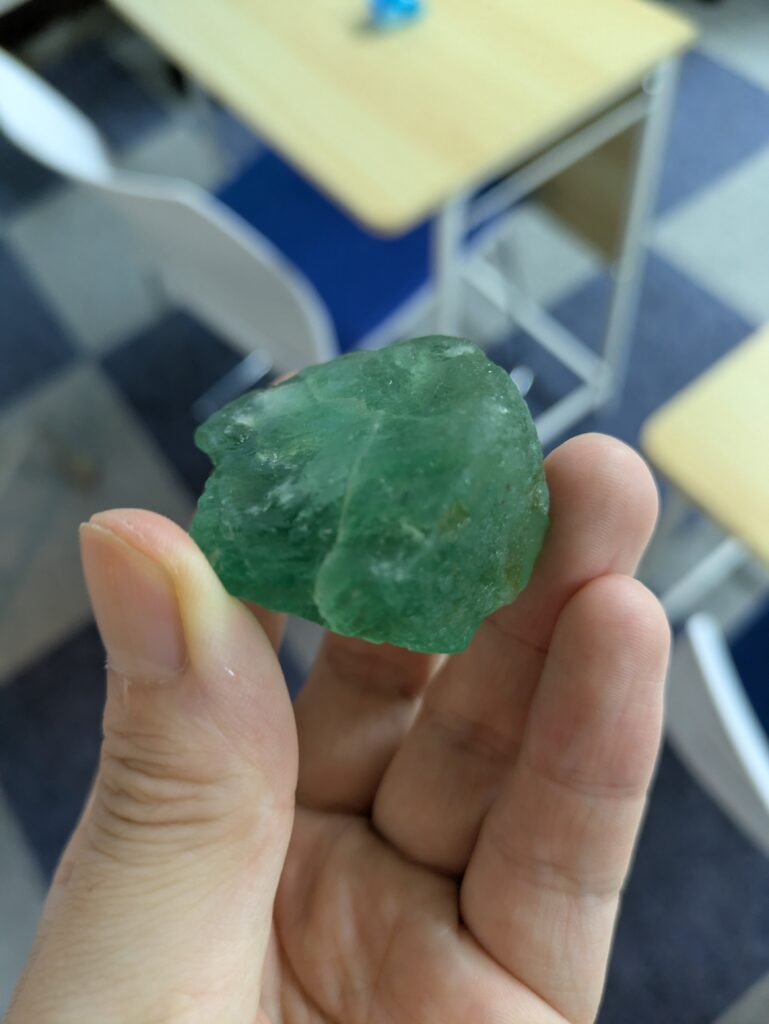 学習塾にふさわしいインテリアを考えていたところ、中1の理科で習う「火成岩」や珍しい石を展示するのはどうだ?と思い立ちコレクションを始めました。現在はまだ蛍石と水晶だけですが、徐々に増やしていく予定です。